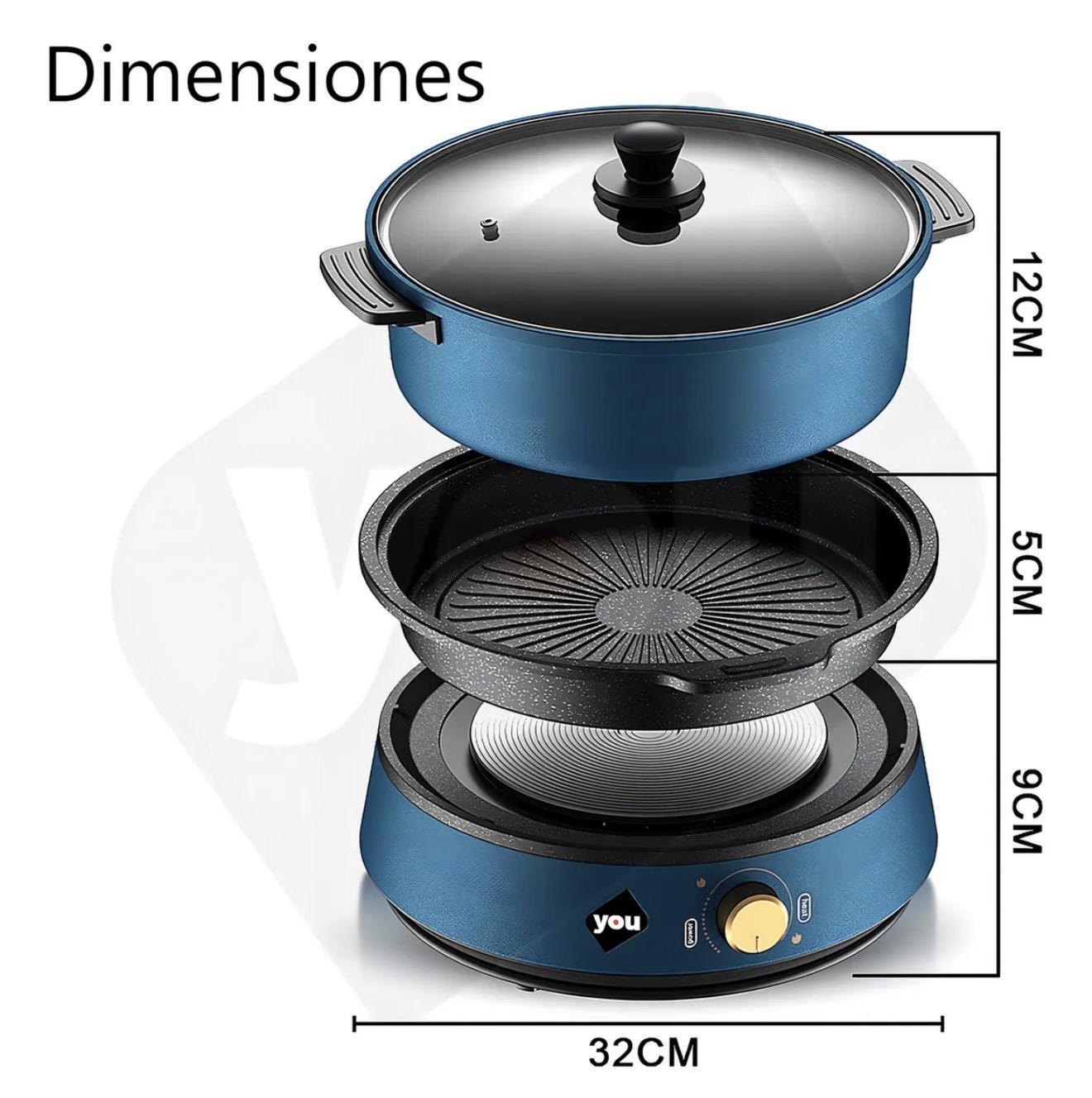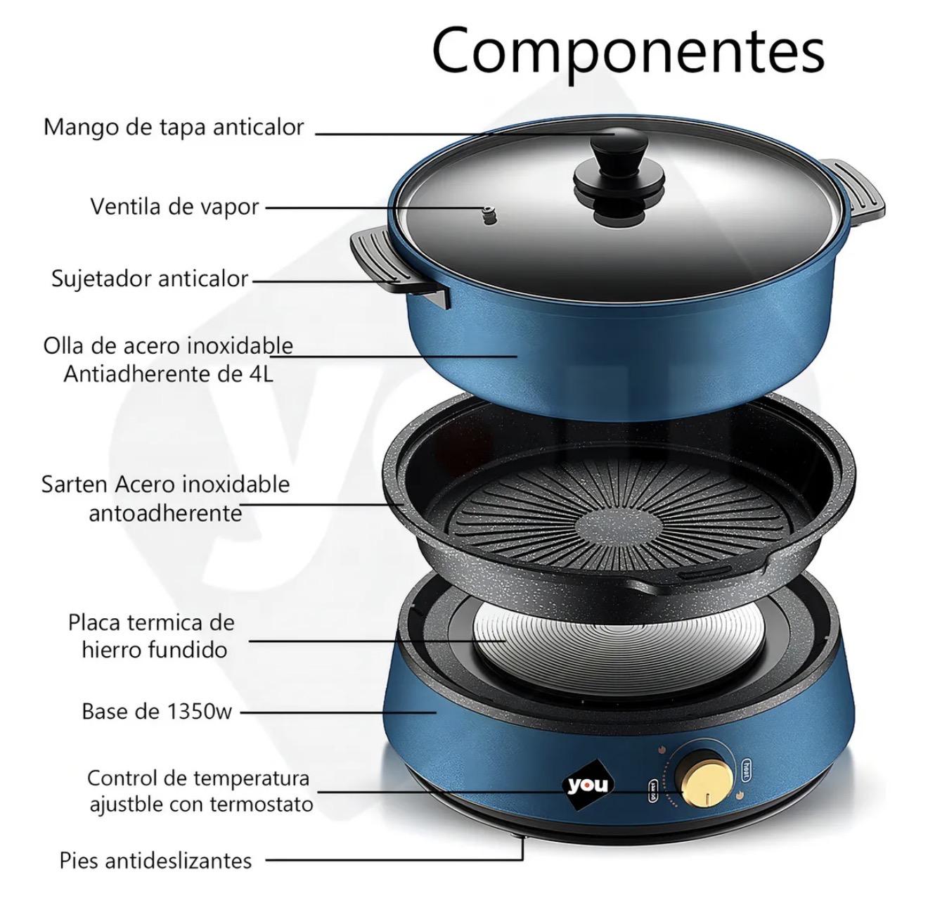 Olla Sartén Eléctrico YOU 4L Antiadhesente Azul Acero 1350W con Tapa Vidrio