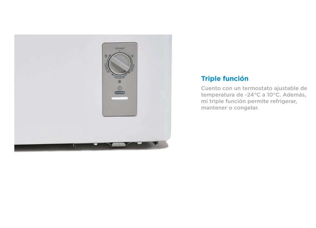 Convertible a solo Refrigerador /Mantener / Congelador Termostato ajustable de temperatura -24°C a 10°C Interior color Blanco Evaporador tipo “D” para mejor transferencia de calor y distribución de temperatura Sistema de drenado al frente con tapa 2 patas niveladoras y 2 ruedas al frente, Bisagras incorporadas y balanceadas a 45° Compresor con gas R600 y ciclopentano (Ecológico) Diseño de una sola pieza para fácil limpieza, tapa con Esquinas redondeadas