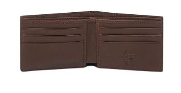 Con sutiles perforaciones al frente y aplicación metálica de logotipo Cuadra. En su interior cuenta con dos espacios para efectivo y seis espacios para tarjetas.