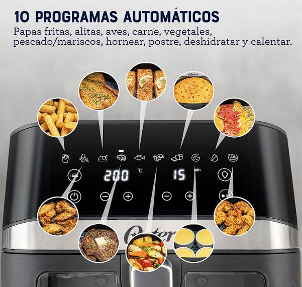 10 Programas Automáticos que añaden conveniencia y facilidad al cocinar: Papas fritas, alitas, aves, carne, vegetales, pescado/mariscos, hornear, postre, deshidratar, calentar