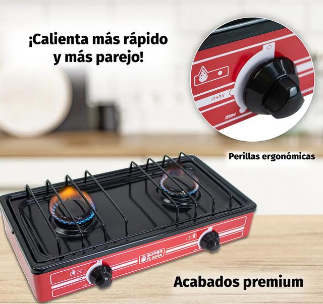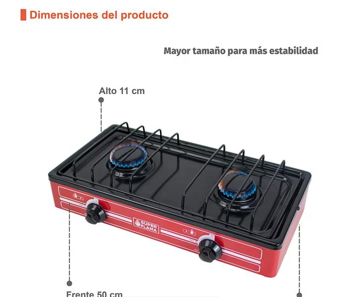 Combo Super Flama PRACTI FLAMA Parrilla De Gas LP De 2 Quemadores con Tanque De Gas 10 Kg y Kit de I