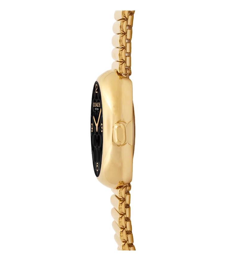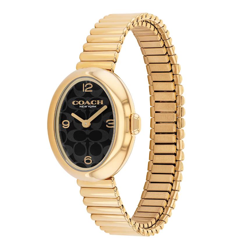 Atrévete a iluminar cada instante con el reloj Coach de la colección SAMMY, un diseño pensado para resaltar tu elegancia natural. Este reloj para mujer combina la distinción de su brazalete y caja dorados con una carátula ovalada de color negro que crea un contraste impactante, haciendo resaltar sus manecillas e índices dorados. El resultado es un estilo refinado y moderno, perfecto para acompañarte en reuniones, cenas o cualquier momento donde quieras destacar.