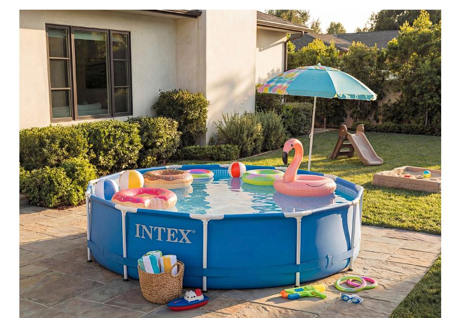 Disfruta de momentos inolvidables con tu familia y amigos mientras se dan un chapuzón en esta alberca rígida de la marca Intex.