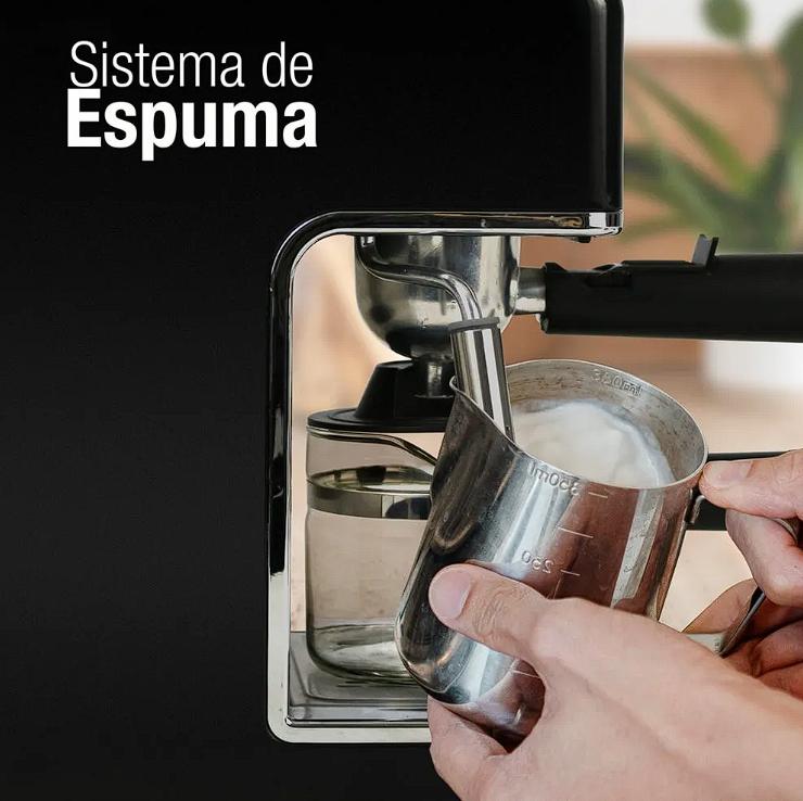 Koblenz Cafetera Expreso De 3.5 Bares y Capacidad de 4 Tazas, Sistema de Espuma, 800W Color Negro/Ac