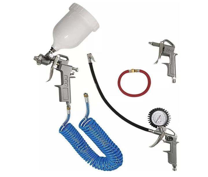 Componentes incluidos Boquillas, Compresor De Aire, Conectores, Manguera Espiral Azul, Pistola De Pintura con depósito de gravedad, Pistola de Soplado, Pistola de inflado con manómetroBoquillas, Compresor De Aire, Conectores, Manguera Espiral Azul, Pistola De Pintura con depósito de gravedad, Pistola de Soplado, Pistola de inflado con manómetro