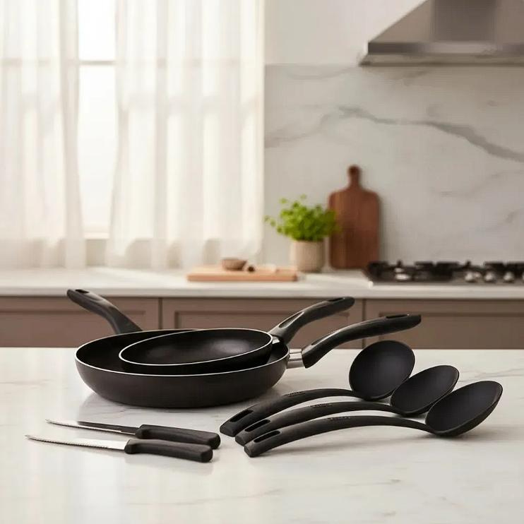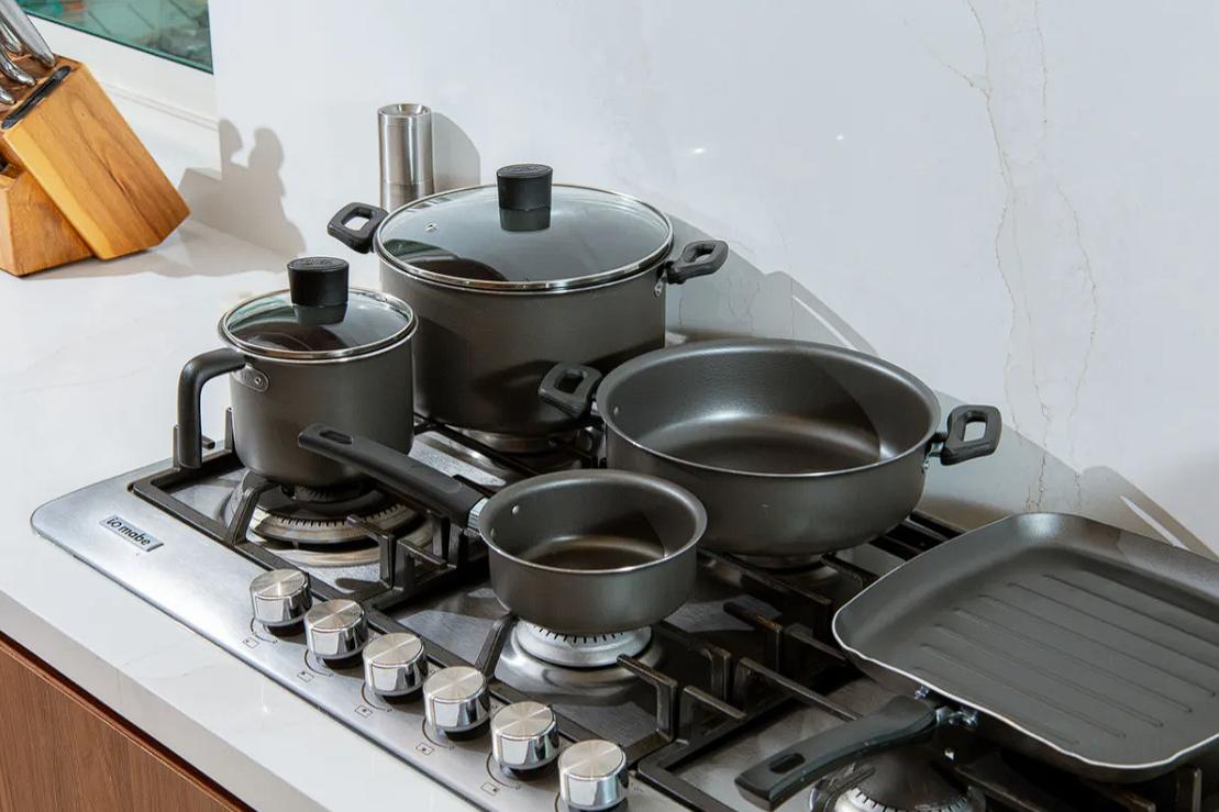 Batería de cocina fabricada de aluminio que garantiza durabilidad y resistencia.