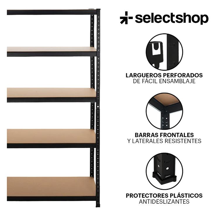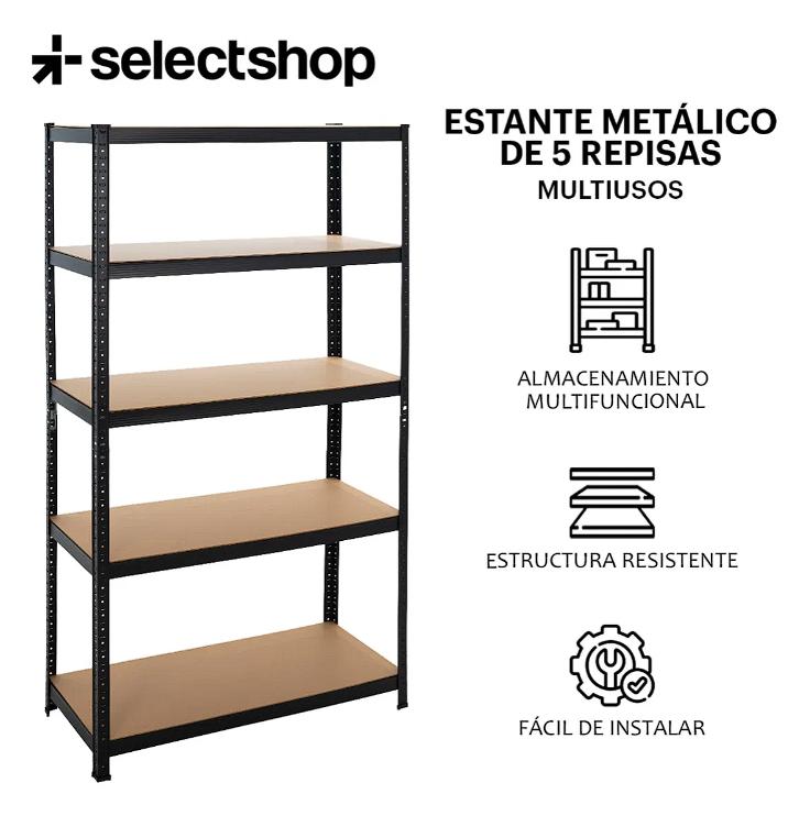 Estante rack organizador metálico con 5 repisas 182x90x40 cm