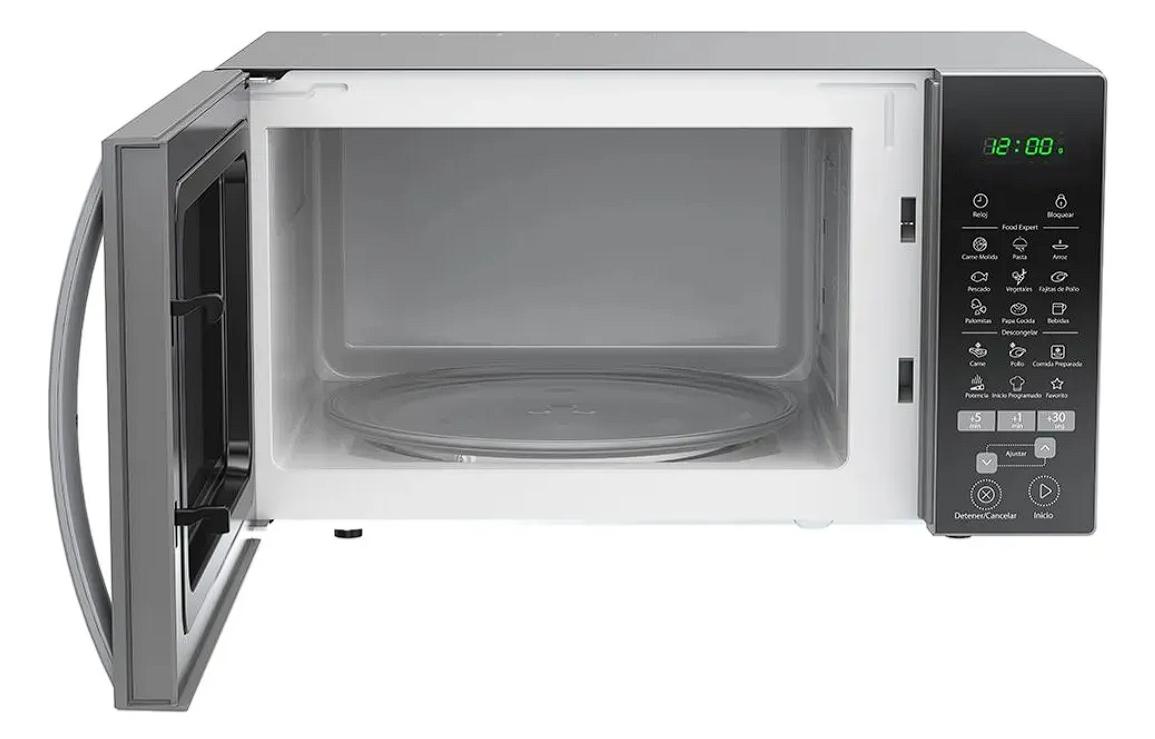 Microondas 1.1 p³ con pantalla LED, operación con control digital y botones rápidos de tiempo. Cuenta con calentado rápido de 1 a 6 minutos que te permitirán tener tus comidas favoritas listas al momento. Además, cuenta con 3 niveles de potencia y 9 opciones para cocina Food Expert con el que podrás preparar desde Palomitas hasta Carne Molida con un solo botón.