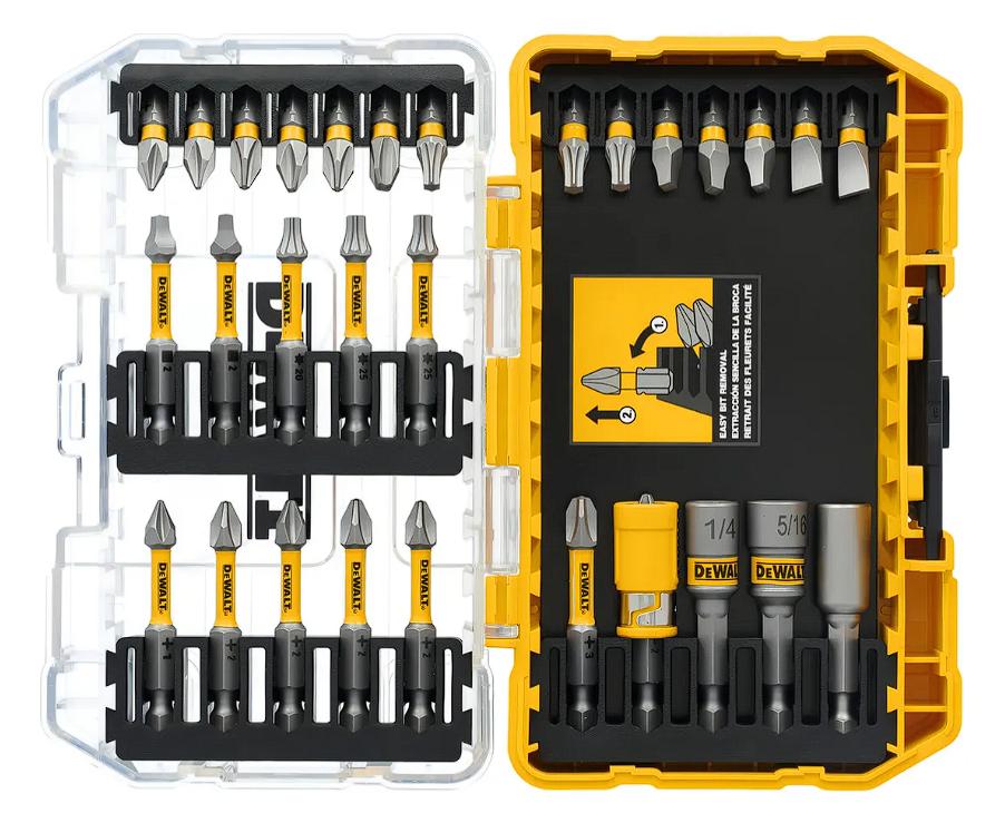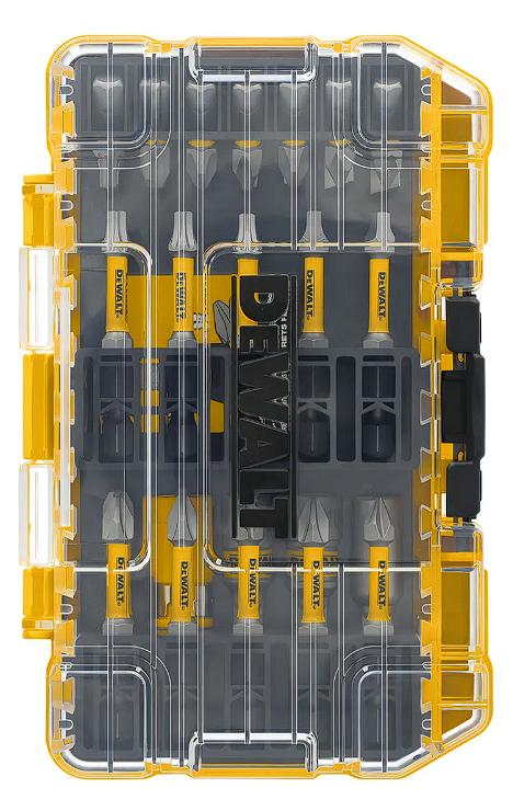 El sistema ToughCase+ es un sistema de carcasa conectable diseñado para optimizar el espacio de almacenamiento y mantener tus brocas organizadas. El diseño de barra de bits permite una fácil extracción de la broca y la tapa transparente te permite ver el interior de un vistazo. Las puntas de destornillador DEWALT Max Fit ayudan a maximizar tu sistema de herramientas eléctricas DEWALT. Con el sistema de bloqueo de tornillo magnético 10X, las brocas de ajuste máximo son ideales para su uso en destornilladores de impacto y taladradores/conductores. Cada broca cuenta con una punta mecanizada de precisión para un ajuste ideal en huecos de cabeza de tornillo, lo que resulta en menos tornillos pelados. Tamaños pequeños y pequeños ToughCase + disponibles ahora. Próximamente las tallas medianas y grandes.