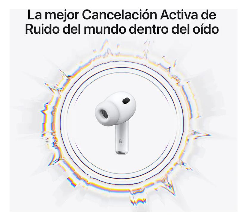 Se rediseñó por completo la arquitectura interna, que ahora brinda un mejor desempeño acústico, y la geometría externa también cuenta con un nuevo diseño más seguro. Gracias a su batería mejorada, una sola carga te permite disfrutar hasta 8 horas de audio con Cancelación Activa de Ruido.Nota al pie¹² Además, los AirPods Pro 3 son los primeros AirPods con clasificación IP57, lo que significa una mayor resistencia al polvo, al agua y al sudor.Nota al pie