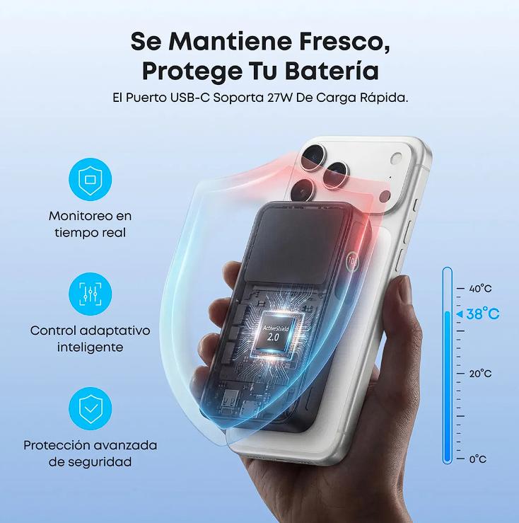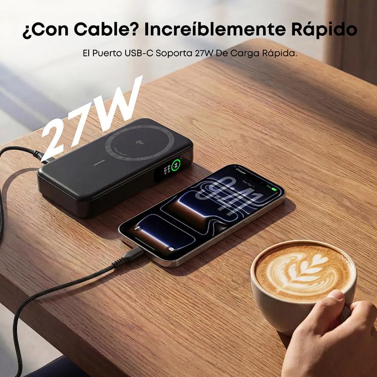 Cargador portátil Qi2 certificado de 15W, compatible con MagSafe.
