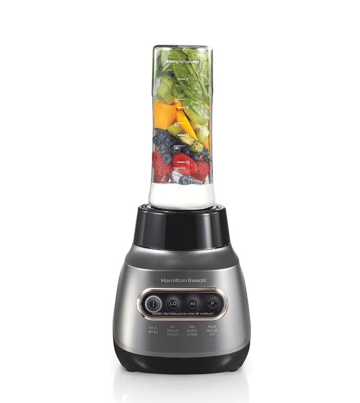 El versátil sistema electrónico de cocina 3 en 1 de Hamilton Beach funciona como tres electrodomésticos independientes: una licuadora tradicional, un procesador de alimentos y una licuadora personal para batidos. Cuenta con un potente motor de 800 watts de potencia máxima que tritura hielo, mezcla, pica, rebana, tritura y mucho más.