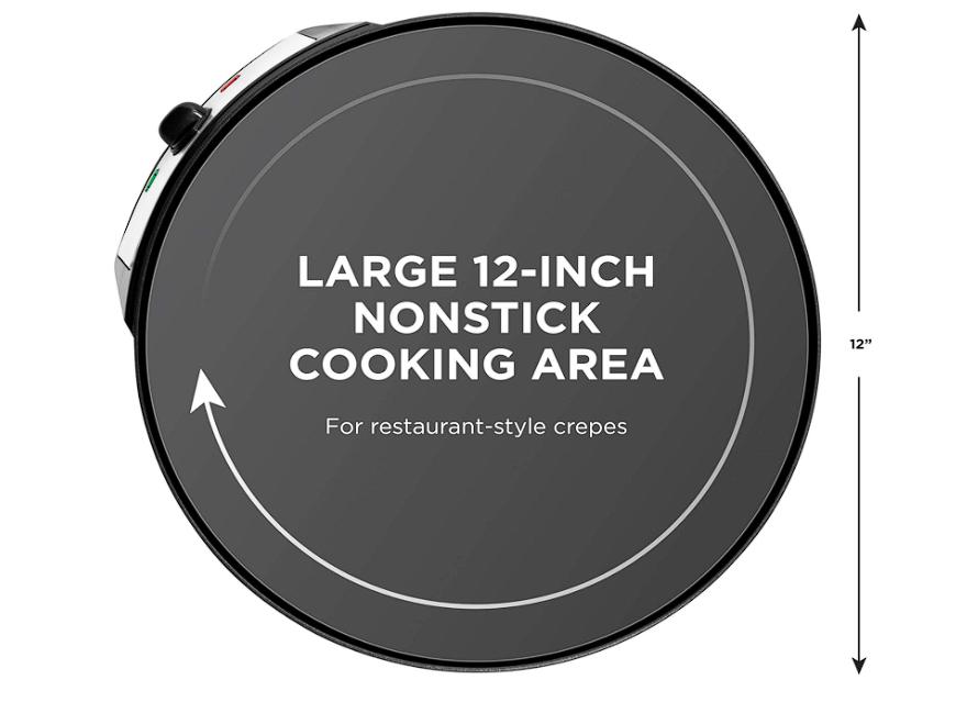 Controla la temperatura con la perilla ajustable y las luces indicadoras de Listo y Encendido. Una vez alcanzada la temperatura deseada, la luz permanecerá activa. Evita el contacto con la sartén caliente de la crepera. Incluye un esparcidor de masa de madera y una espátula para una distribución uniforme y una preparación sencilla de crepas.