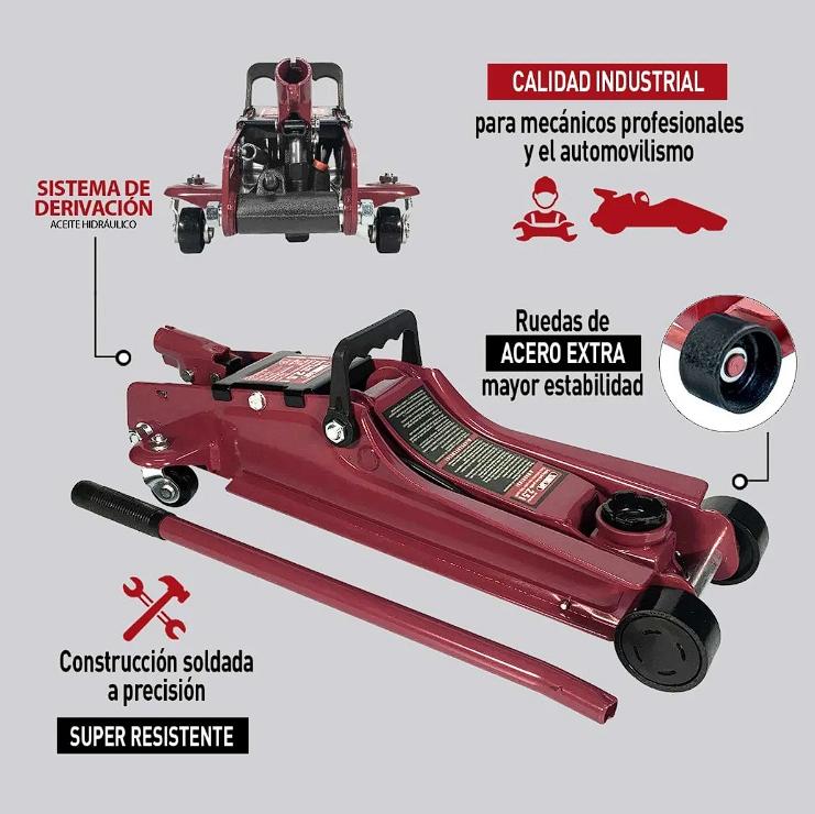 Este gato hidráulico se caracteriza por su construcción soldada a precisión, lo que lo hace súper resistente y duradero. Además, cuenta con un acabado de grado industrial que lo protege contra el desgaste y la corrosión. La montura giratoria y las ruedas traseras permiten que el gato hidráulico sea fácilmente maniobrable y posicionable. También cuenta con un sistema de derivación de aceite hidráulico que evita que el brazo se sobre-extienda y un sistema de seguridad por sobrecarga que evita que se use más allá de su capacidad. ¡Herramientas para siempre!