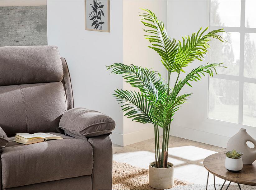 Dale más vida al porche de tu casa, jardín o sala de estar, consiste en un ejemplar de ornato de palmera, que te conectan con la frescura del trópico y el mar. Por estar hecha de plástico, no requiere de cuidados especiales y es durable.