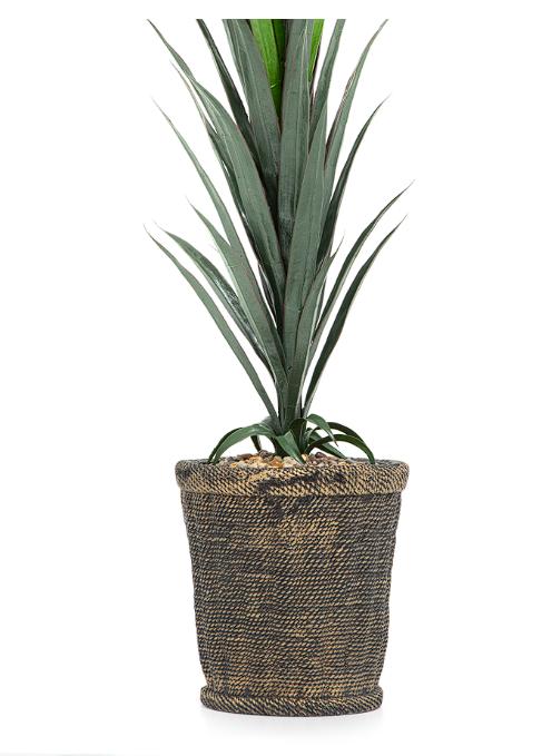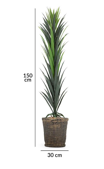 Esta imitación realista de la variedad dracaena, de un vibrante color verde, mide 150 cm de altura y no requiere cuidados. La base, de 30 cm, está hecha de cemento y plástico, dándole estabilidad y un aspecto natural.