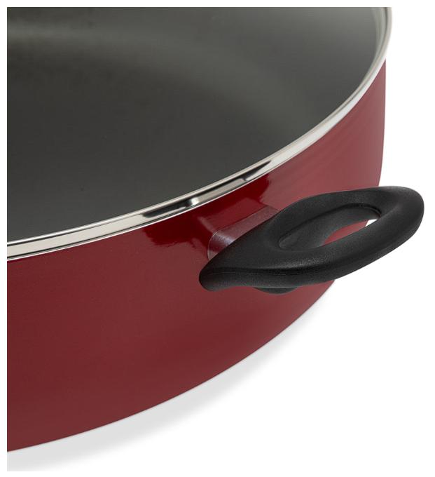 Se trata de una pieza con esmalte exterior rojo, fabricada de aluminio espesor extra fuerte, con antiadherente de 5 capas en su interior, con la que tienes la seguridad que no se va a pegar nada de lo que cocines. Sus asas están cubiertas de baquelita, para más comodidad. Además, cuenta con tapa de vidrio y capacidad de 10.5 litros.