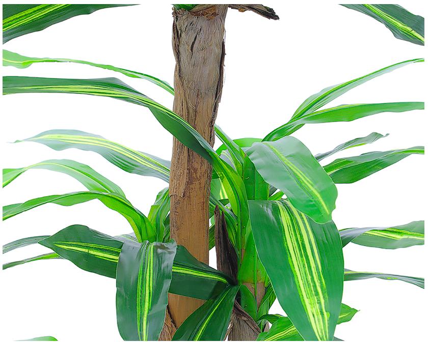 Se trata de un aditamento de diseño frondoso, el cual presenta una altura aproximada entre 160 y 180 cm, ya que puedes acomodar sus amplias hojas como prefieras. Además, viene con una base redonda que puedes colocar en donde quieras.