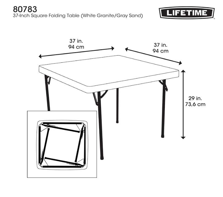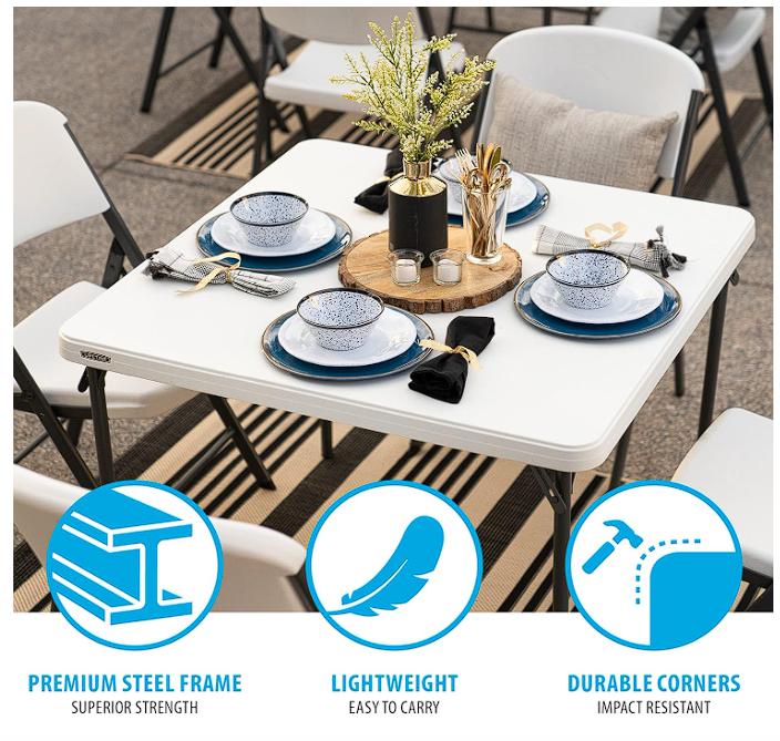 LIFETIME - Mesa Plegable Cuadrada de Grado Comercial