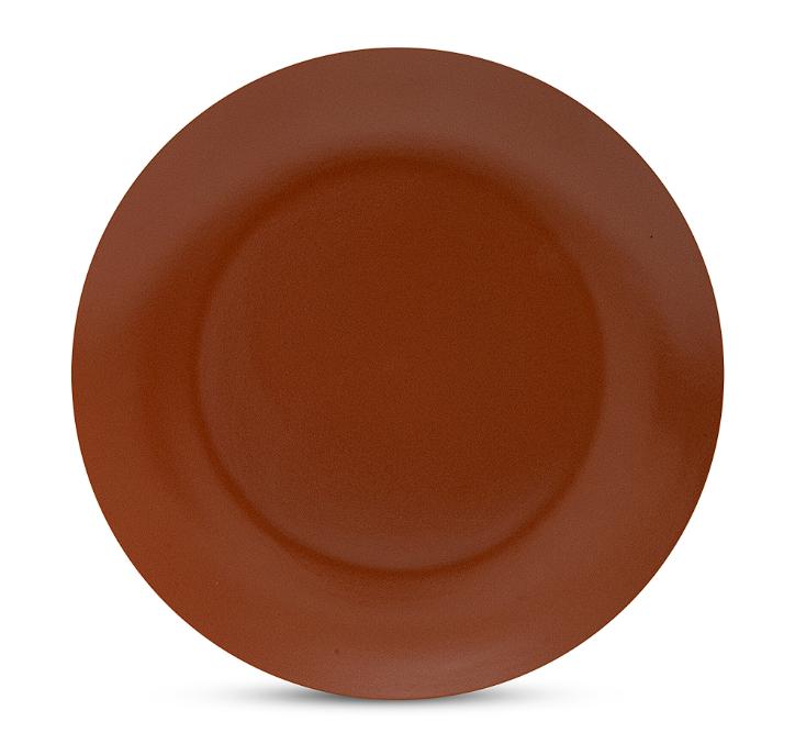 Es de color café y con diseño liso. Está fabricada con porcelana, un material elegante y resistente, que le da un toque de elegancia.