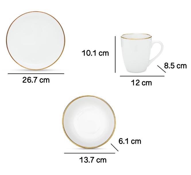 Disfruta de momentos inolvidables en familia con este impecable juego de vajilla de 12 piezas, diseñado especialmente para ofrecer un servicio completo para 4 personas.