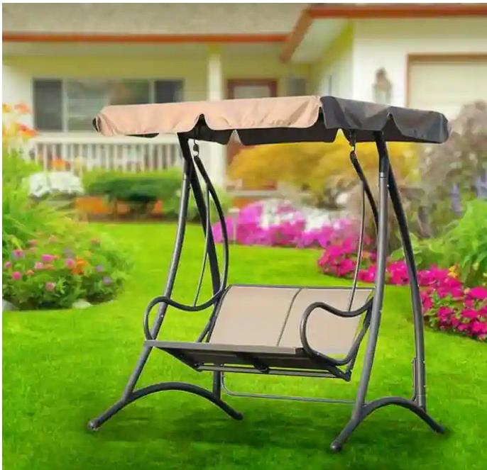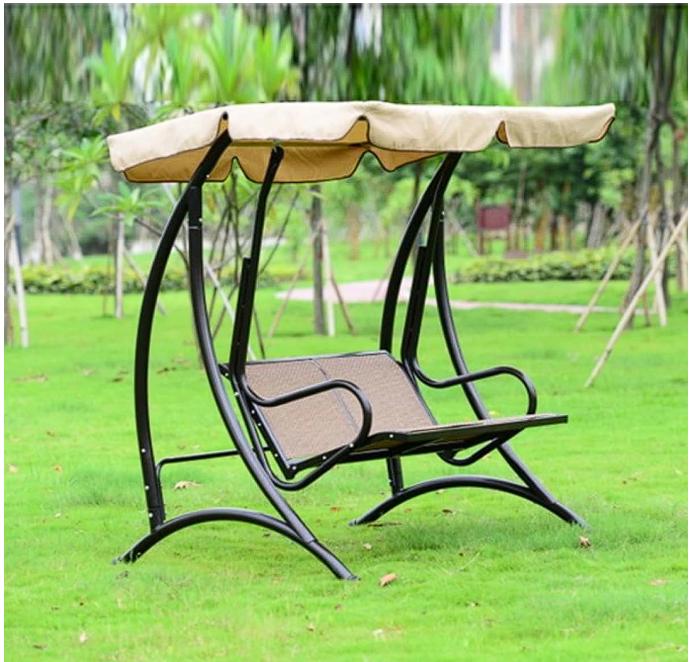 Columpio de jardín para 3 personas, perfecto para relajarse en familia o con amigos, diseñado con estructura resistente para brindar estabilidad y confort en todo tipo de exteriores.