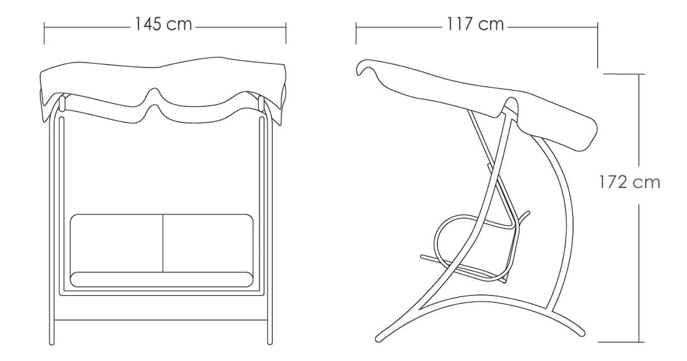 Construcción duradera de acero con recubrimiento en polvo, que proporciona resistencia a la intemperie, evitando la oxidación y prolongando la vida útil del columpio en ambientes exteriores.