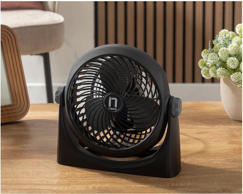 Prepárate para la temporada de calor con este ventilador inclinable CEN-1010 de la marca Navia. Por su diseño puedes colocarlo en cualquier mesa o mueble de tu preferencia.