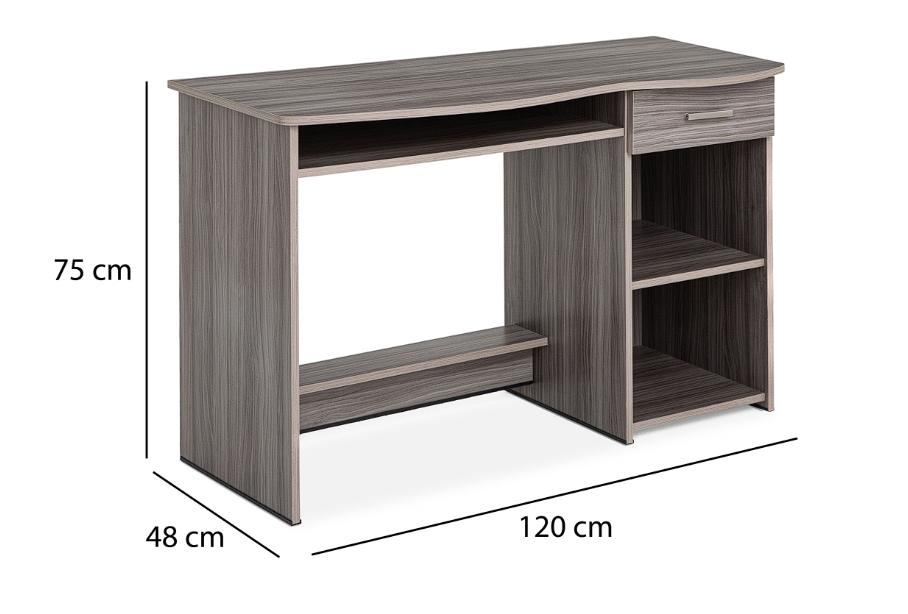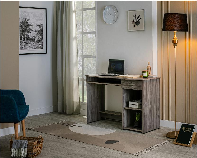 Cuenta con un cajón con jaladera de metal, así como entrepaños para organizar tus documentos. Además, es de estilo contemporáneo y tiene medidas de 120 x 48 x 75 cm.