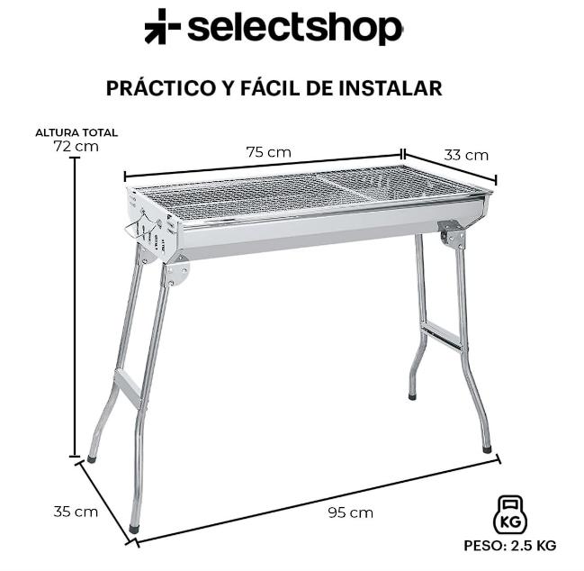 Asador, Plegable y portátil. Con asas en el lateral de la parrilla para facilitar el movimiento, la parrilla de barbacoa se pliega fácilmente y ahorra espacio. Con su tamaño de 95 x 71 x 33 cm es ideal para transportar y fácil de montar.