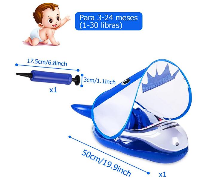 El flotador de Piscina para niño con dosel brinda protección solar UPF 50+, los lados son de malla transparente y visible para proteger la piel de su niño del sol, y el dosel es desmontable, sin importar en interiores o exteriores, disfrute nadando en cualquier momento y en cualquier lugar.