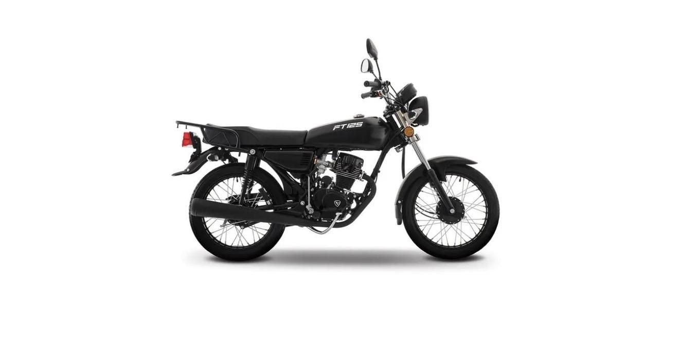 La motocicleta FT125 tiene un motor de 4 tiempos con una potencia máxima de 10.7 Hp @ 8500 RPM, una cilindrada de 124 CC y un torque máximo de 9.5 Nm / 7500 RPM.