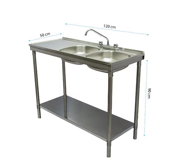 Con medidas de 120 cm de ancho, 50cm de fondo y 85 cm de alto, este fregadero doble ofrece un amplio espacio para realizar tus tareas diarias en la cocina con comodidad.