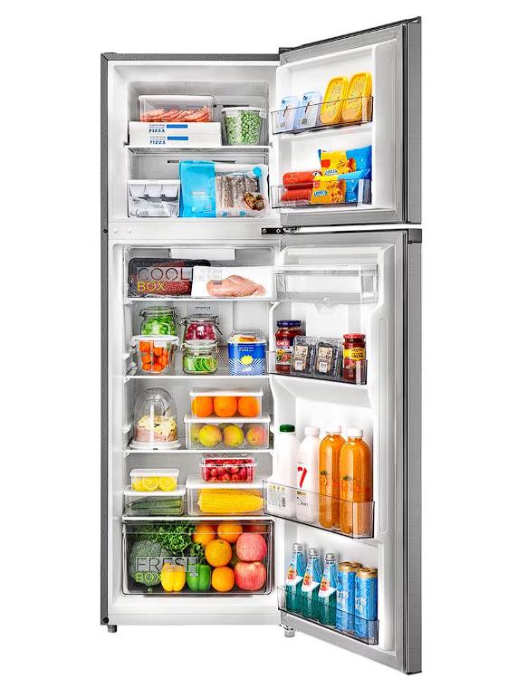 Elegante y eficiente, este refrigerador Top Mount cuenta con tecnología Inverter Quattro para un enfriamiento rápido, silencioso y de bajo consumo. Incluye despachador de agua, compartimento Cooling Box ideal para carnes y mariscos, Mega Ice Box para hielos grandes, y filtro de carbono Active C-Fresh que mantiene los alimentos frescos por más tiempo.