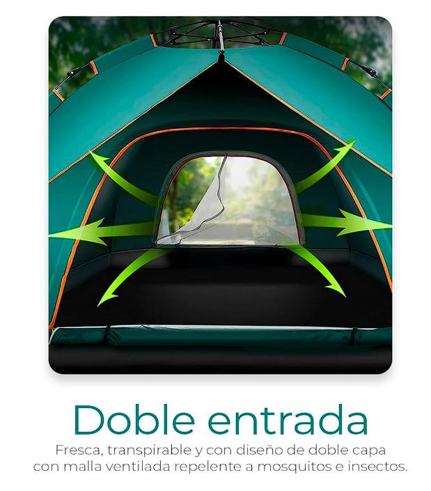 Casa de Campaña para 3/4 Personas, Carpa Plegable de 2 Entradas