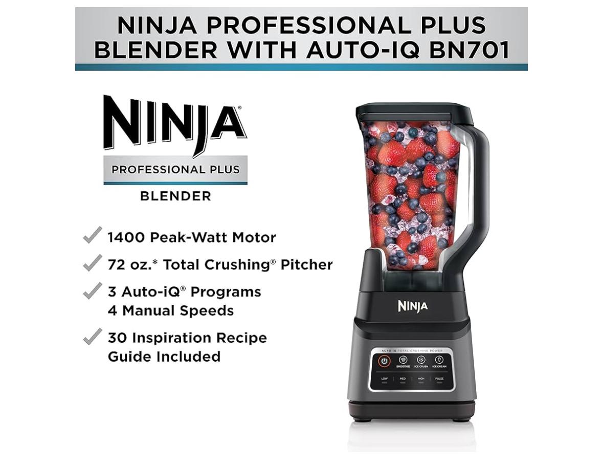 LICUADORA NINJA. Tiene una tecnología innovadora de cuchillas Total Crushing que, combinadas con sus 1400 watts de potencia, trituran perfectamente el hielo para que prepares deliciosos smoothies y bebidas congeladas de una manera profesional