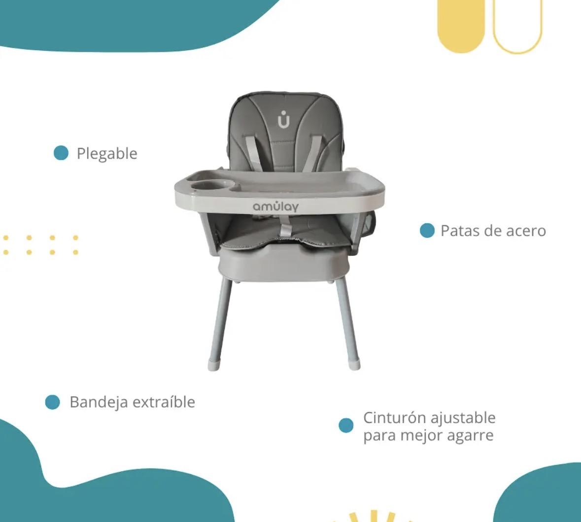 Silla Periquera Para Bebe Alta Plegable Portatil 3 En 1 Color Gris