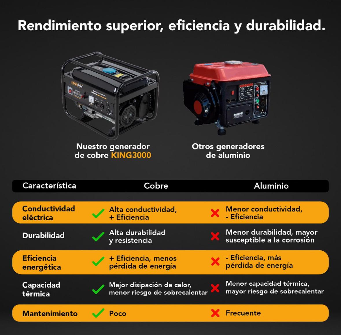 FÁCIL DE TRANSPORTAR: No pares de trabajar o disfrutar del tiempo por falta de electricidad, con este generador portátil KINGSMAN. Suministra la energía necesaria durante tus actividades en cualquier lugar con un práctico arranque manual.