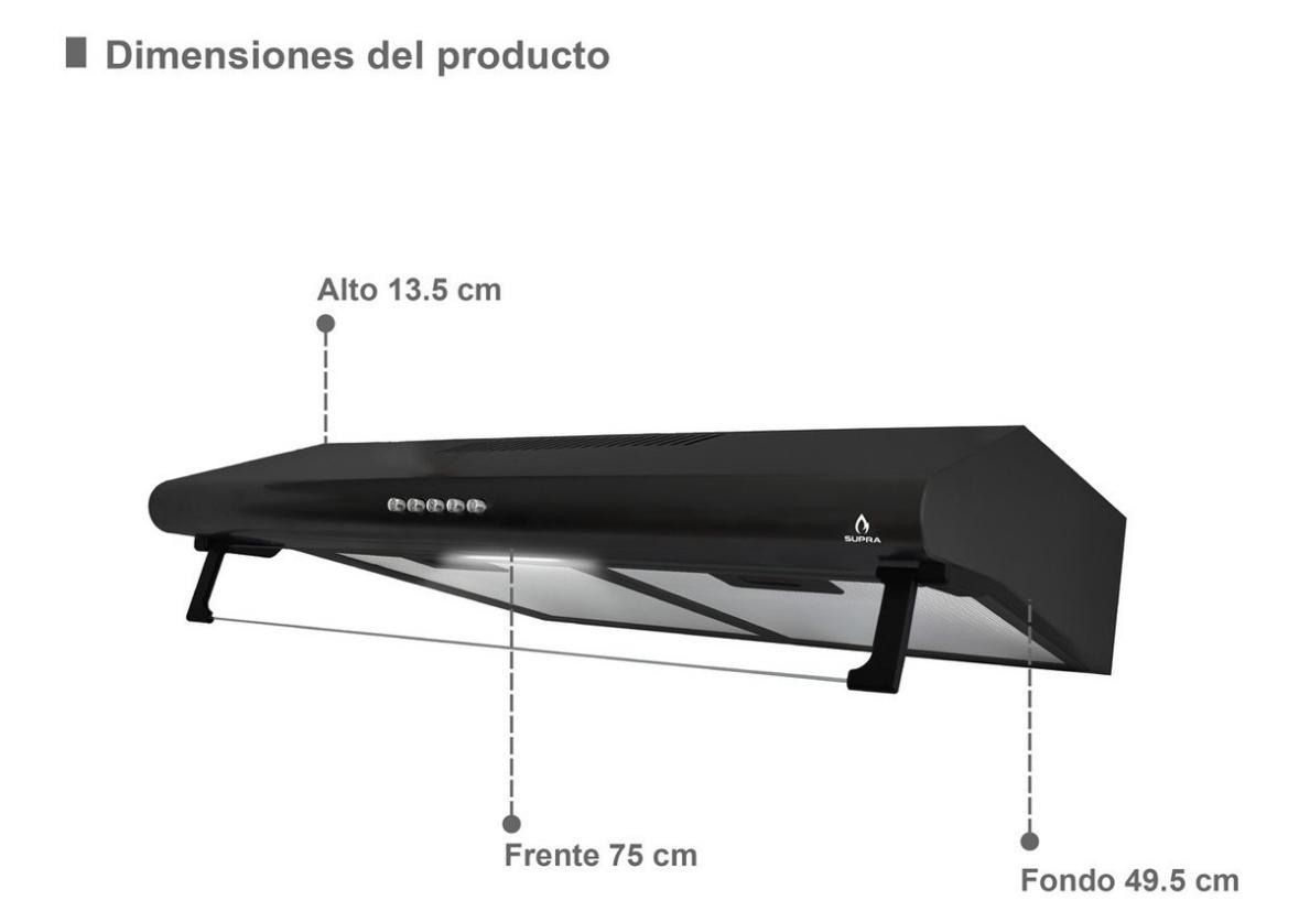 Combo parrilla y campana Supra de 76 cm en color negro Vesubio