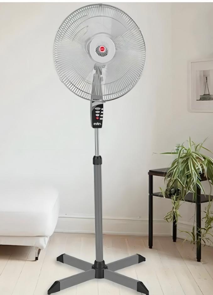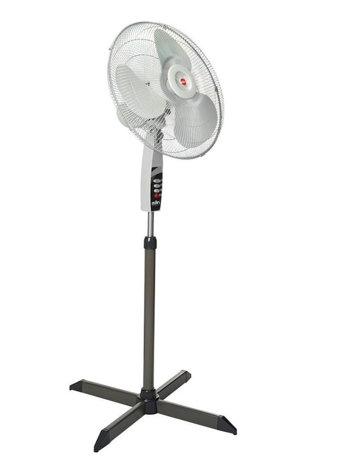 Ventilador de Pedestal de 18 pulgadas$$Interruptor de 4 botones, 3 Velocidades$$Rejilla Metálica protectora$$Inclinación ajustable$$Movimiento Oscilatorio o fijo$$De fácil ensamblado y