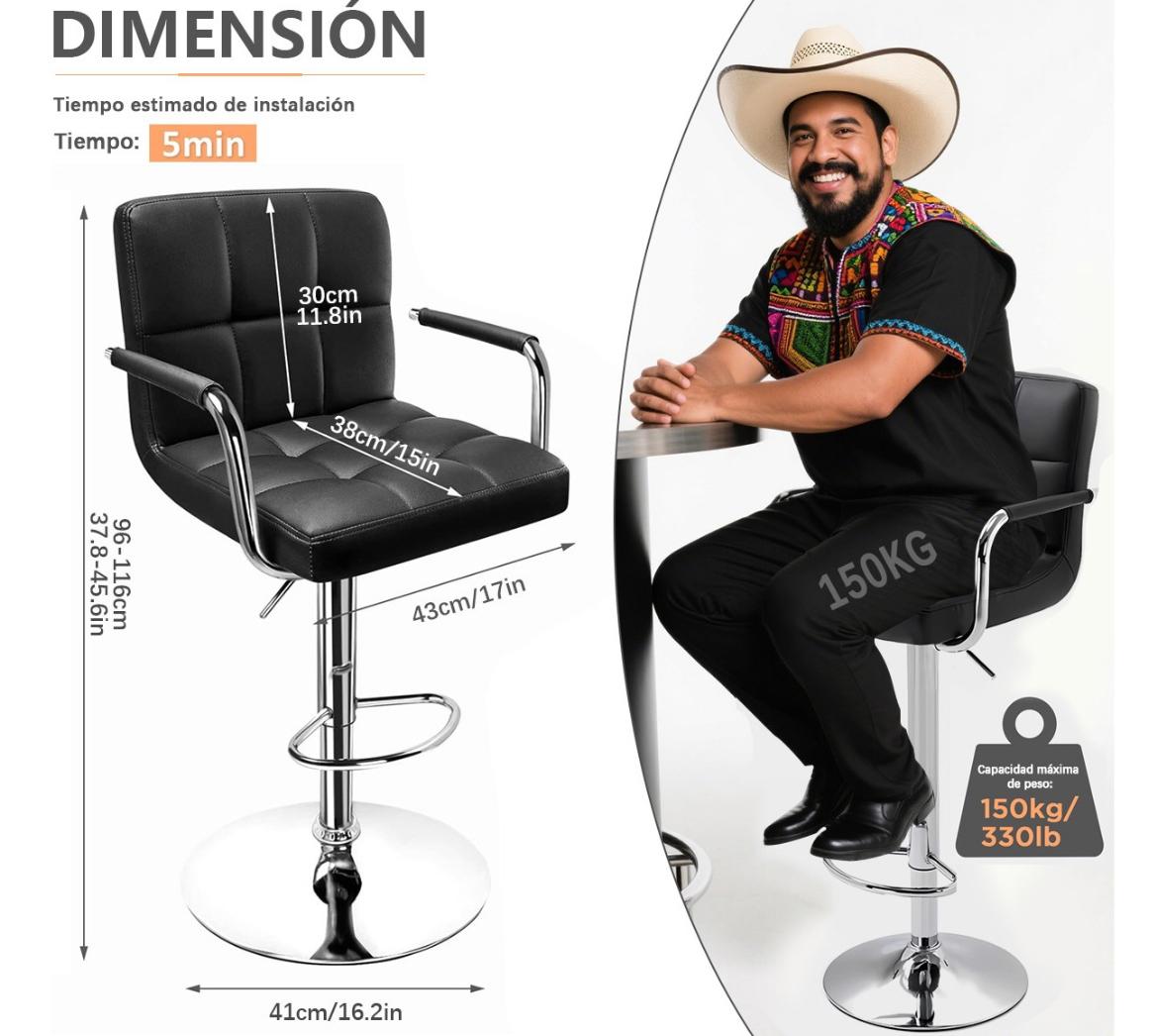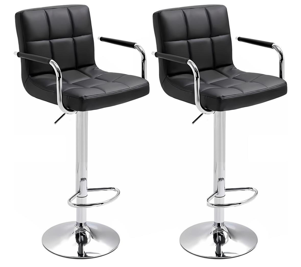 Set De 2 Bancos Sillas 360° Con Respaldo Y Apoyabrazos Cromado Negro