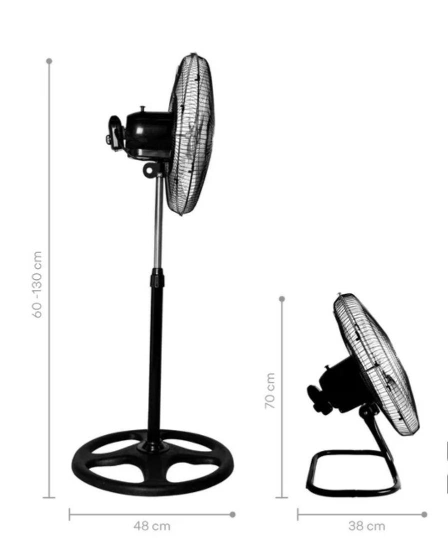 Diseño: Ventilador con 3 aspas metálicas para ofrecer una alta eficiencia en la circulación de aire. Fabricado con materiales resistentes para un rendimiento duradero, ideal para espacios amplios que requieren ventilación constante.