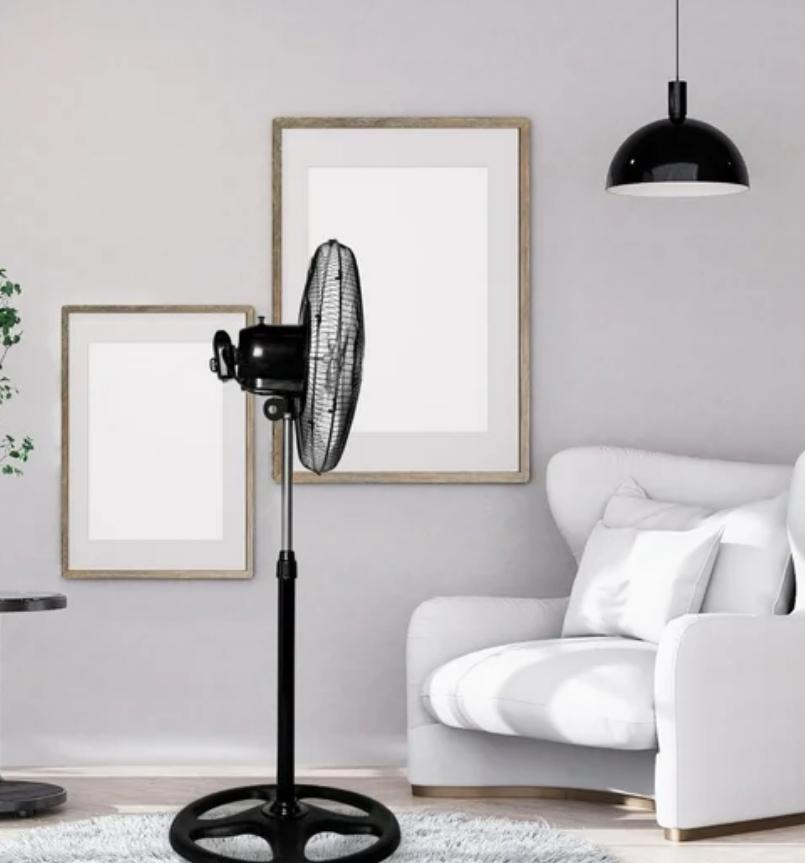 Versatilidad de uso: Puedes utilizar este ventilador de tres maneras diferentes como pedestal, en el piso o montado en la pared, lo que lo hace adaptable a cualquier tipo de espacio.