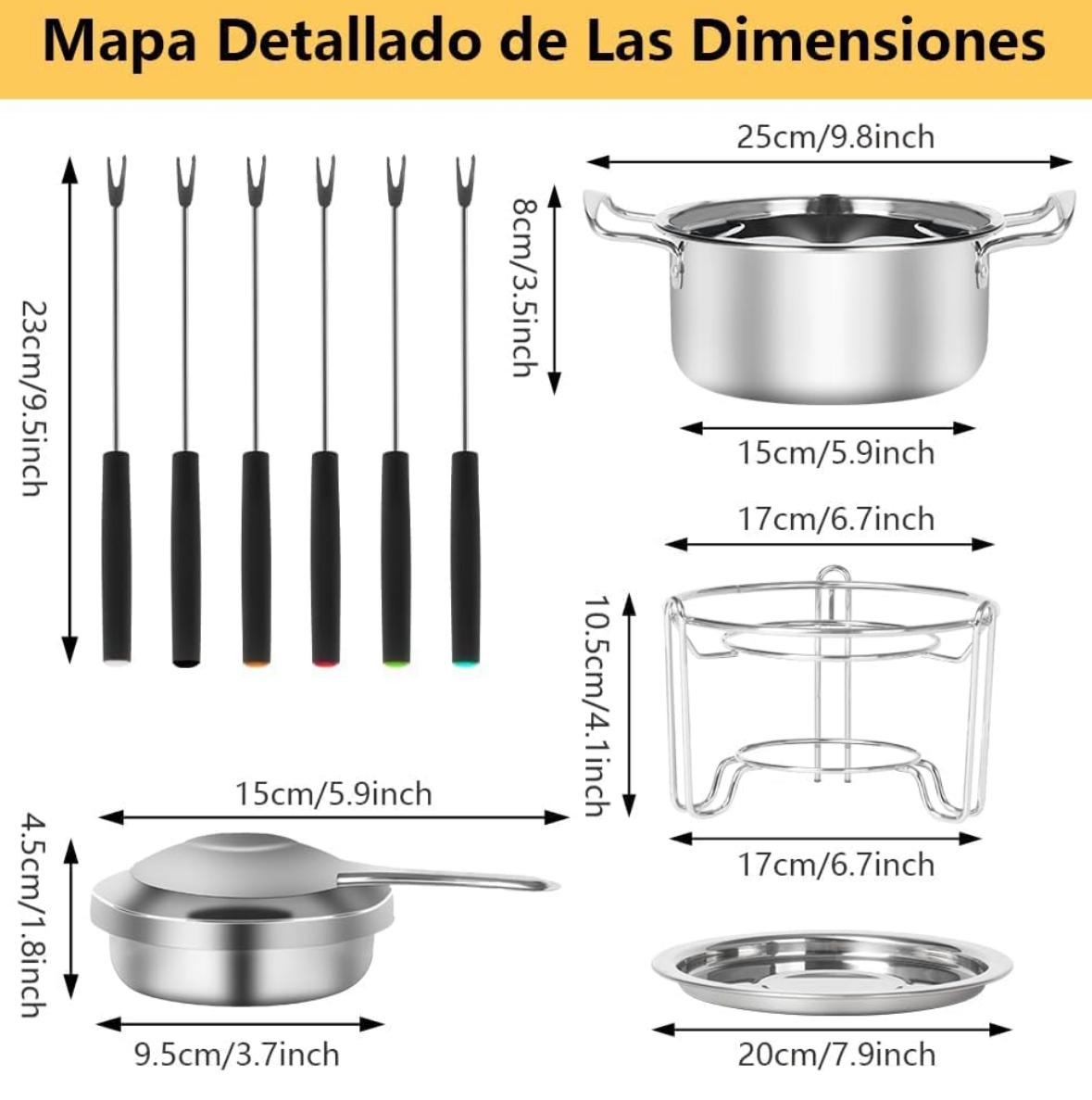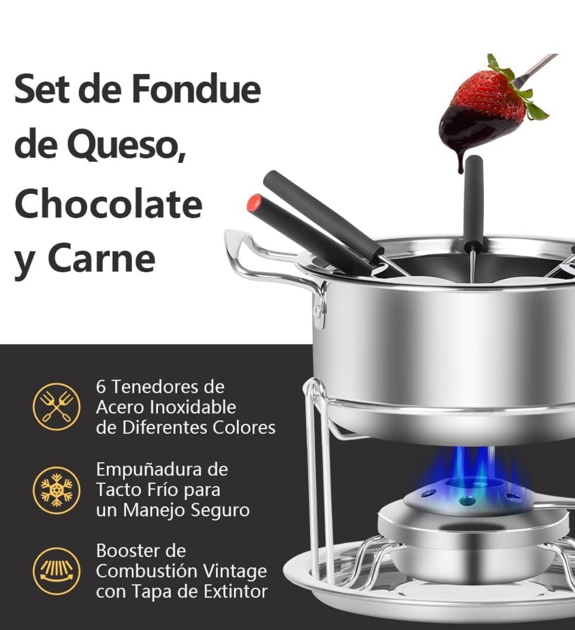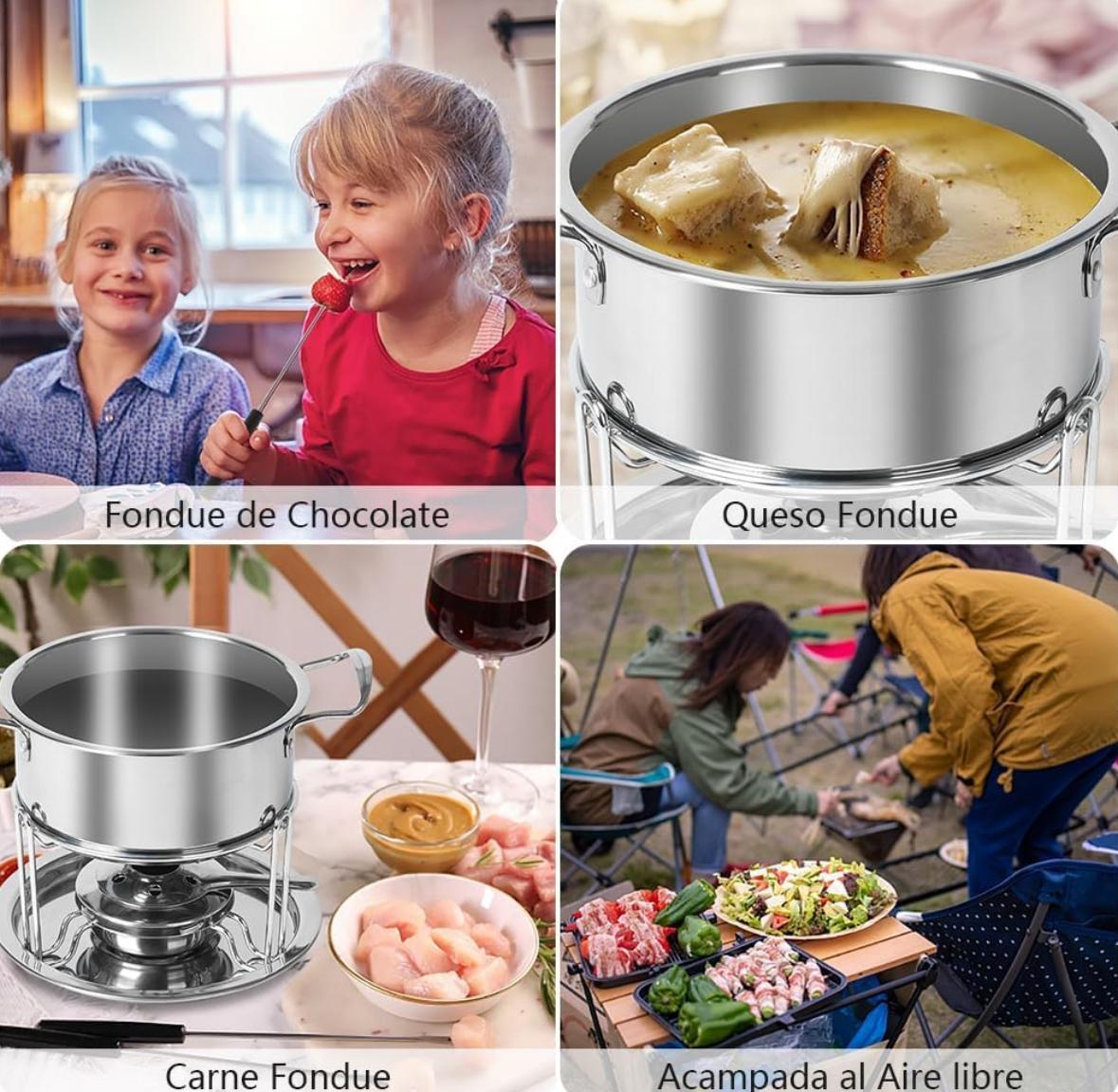 Wotes Set de Acero Inoxidable para Fondue de Queso,Chocolate , Set de Fondues con una Profundidad de