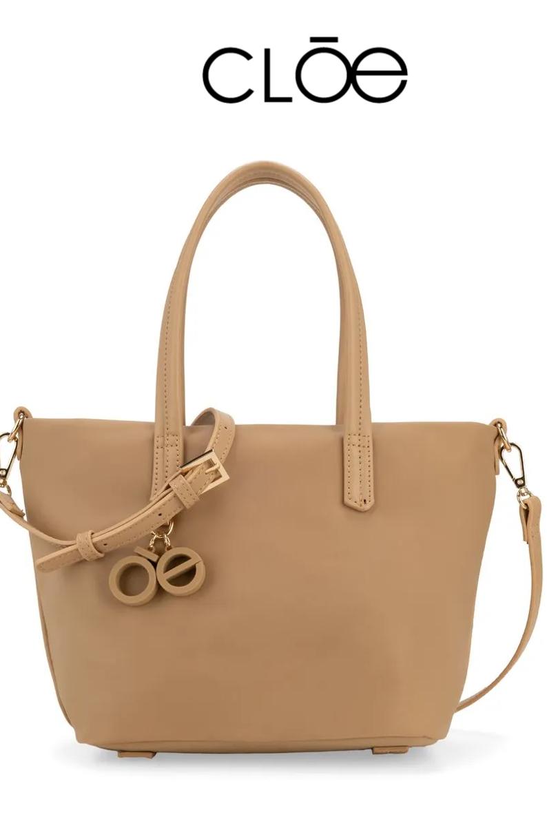 Bolsa cloe Tote Mediano Con Charm Color Nude