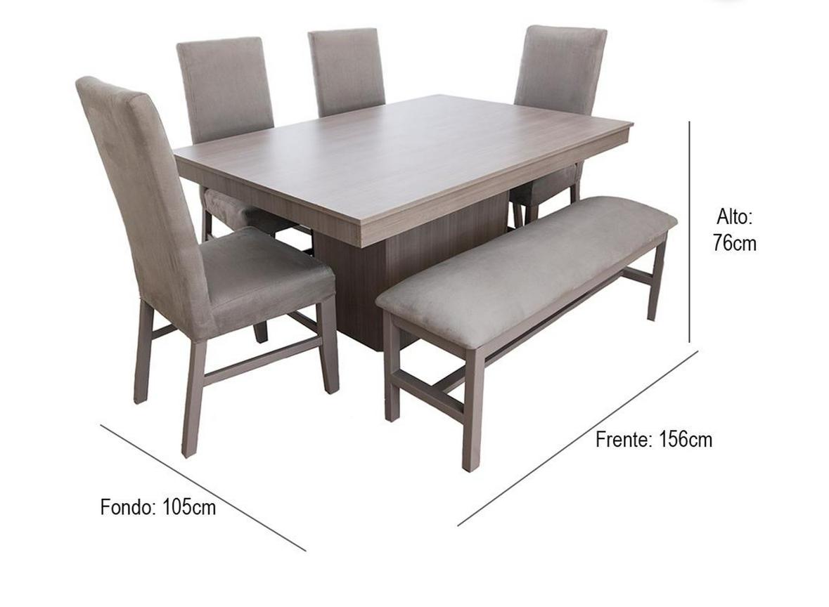 Comedor Camacho Elegant Liso con 4 Sillas y 1 Banca Gris