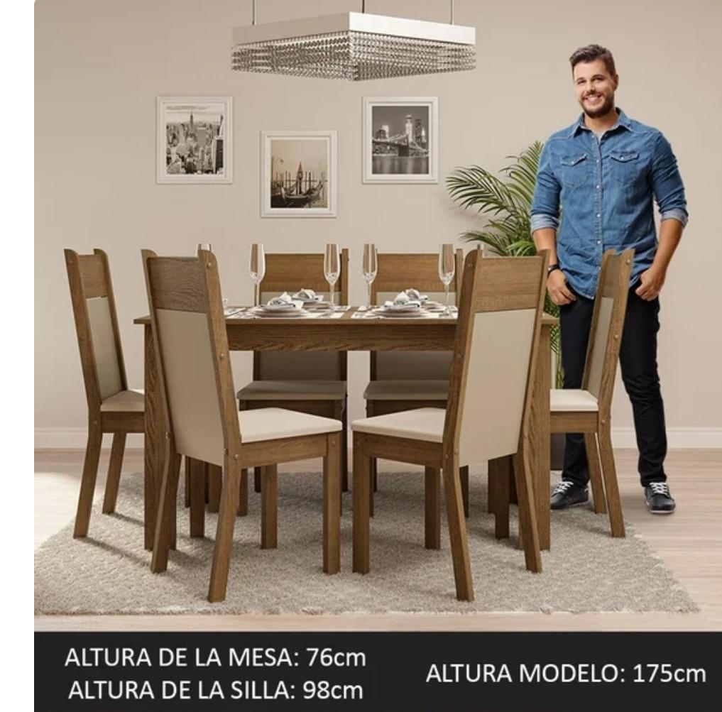 Conjunto Comedor Madesa Jaíne Mesa con 6 Sillas Marrón/Crema Madesa XB044905ZXT