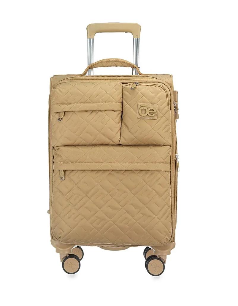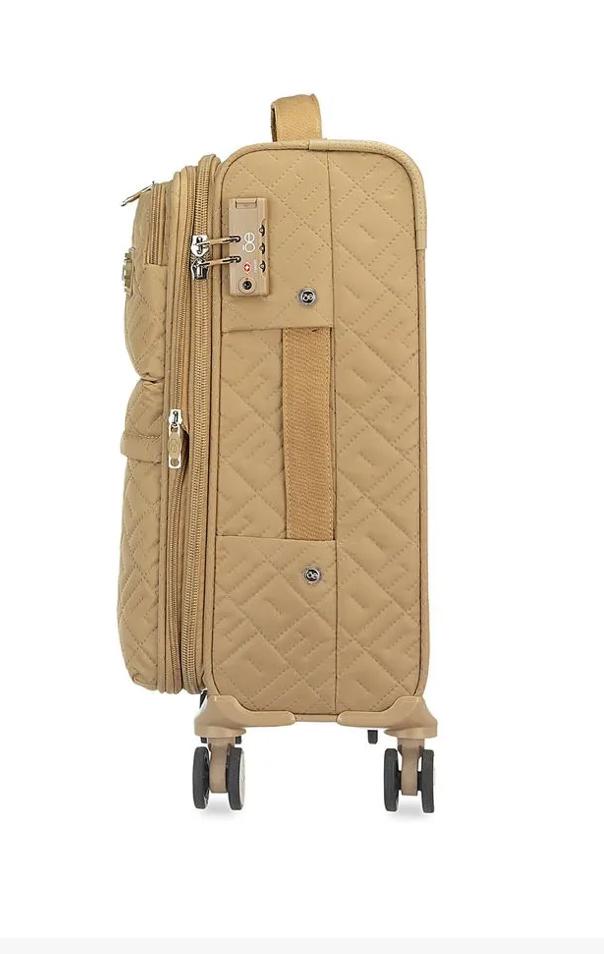 Equipaje vertical hecho con material textil. Cuenta con Cuenta con un ligero bastón de tres alturas. Tiene cuatro ruedas dobles y giratorias con movimiento 360°. Cosmetiquera impermeable.