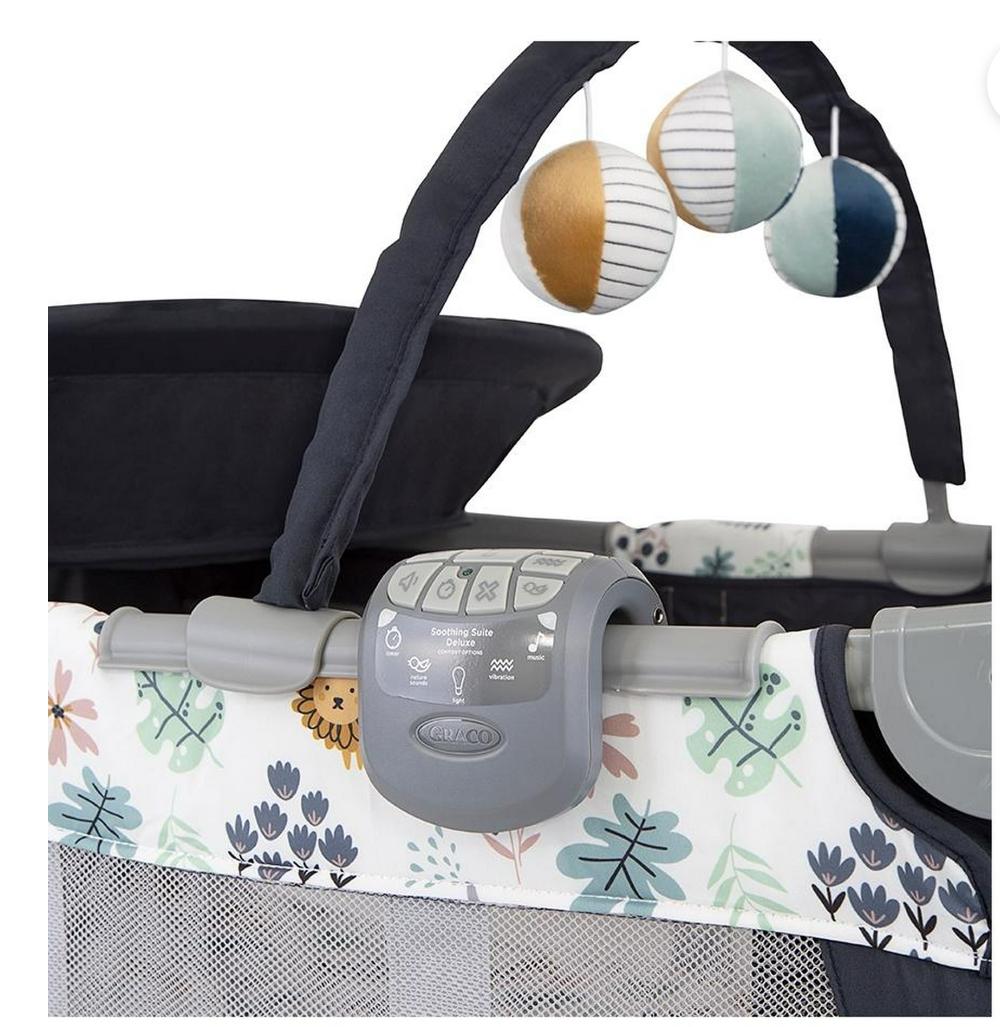 Cuna Corral Graco Contour Electra Travel Into the wild, color azul Contour Electra crece con su hijo, desde recién nacido hasta niño pequeño