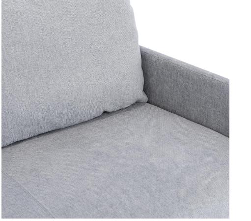 Dimensiones: Largo 121 cm x Ancho 85 cm x Alto 83 cm. Material de la estructura: Madera MDP. Color: Light Grey. Tapizado: Tela de alta calidad.